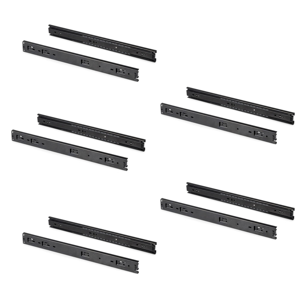 Set mit 5 Paar Kugellagerführungen für 45 x 250 mm Schubladen in Emuca Black Steel