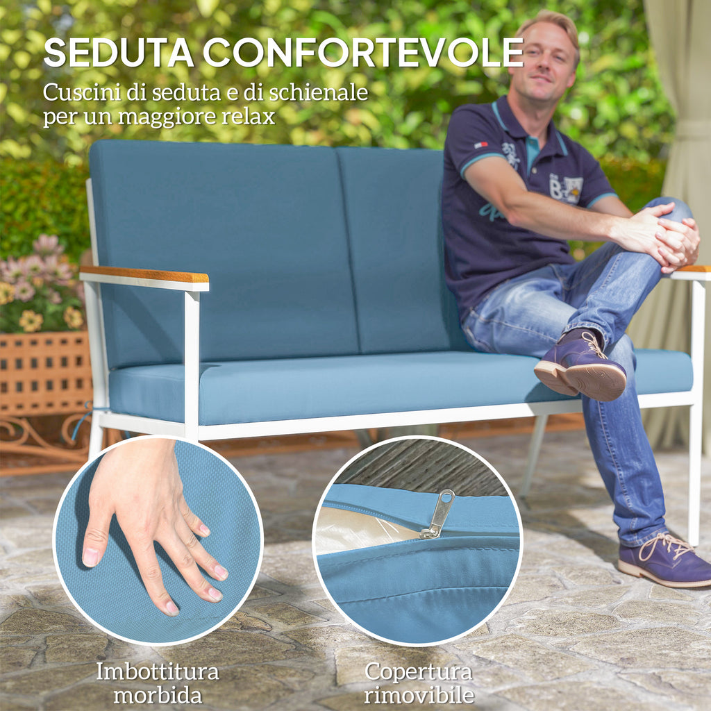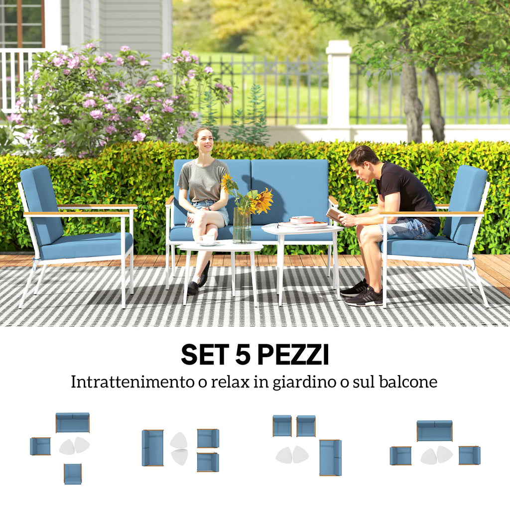 Set 5 Pezzi da Esterno Divano 2 Poltrone e 2 Tavolini in Vetro Azzurro