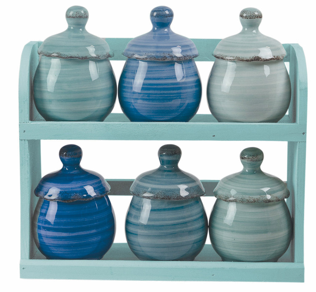 Set mit 6 Keramikdosen mit Holzständer Villa d'Este Home Tivoli Baita