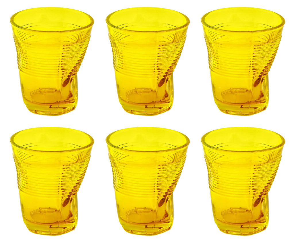 Set mit 6 zerknitterten Gläsern 22 cl Ø8 cm aus gelbem Kaleidos-Pressglas