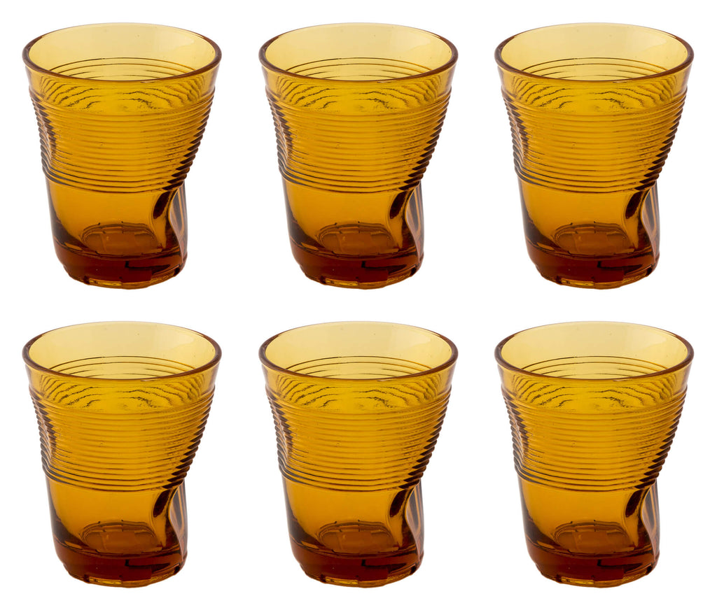 Set 6 Crumpled Glasses 36 cl Ø9 cm in Kaleidos Amber Pressed Glass