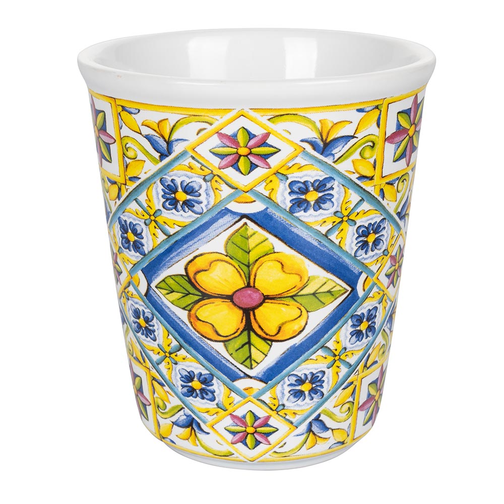 Der mediterrane Geschmack der Geselligkeit färbt das Set Amalfi mit flotten Farben, die in der Tradition verwurzelt sind. Die innovative Kombination von Formen verbessert die Geometrie der Dekorationen und führt uns zurück in die Atmosphäre Siziliens.