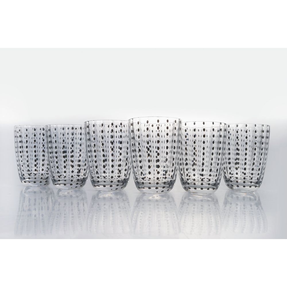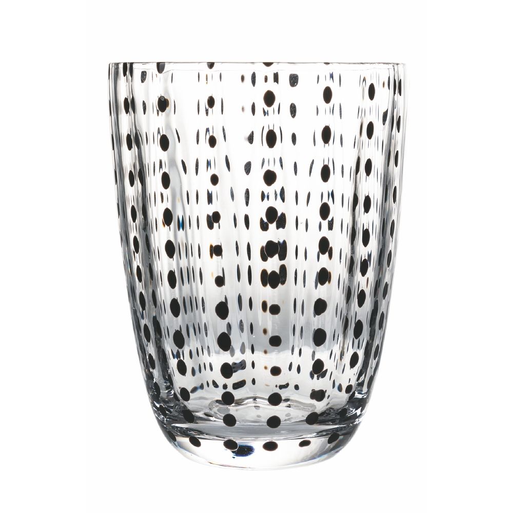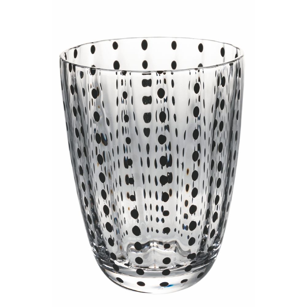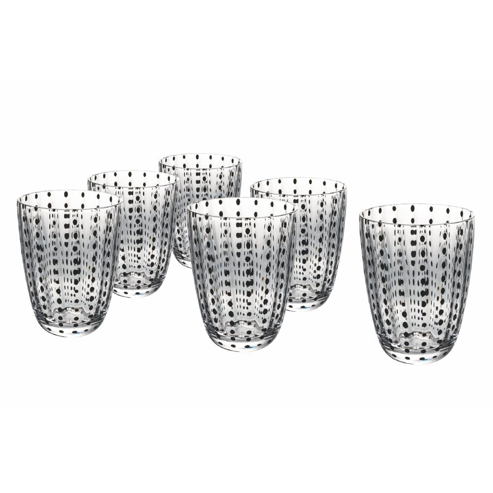 Set mit 6 Kalahari Wassergläsern in Villa d'Este Home Tivoli Transparentes Glas mit schwarzen Tupfen