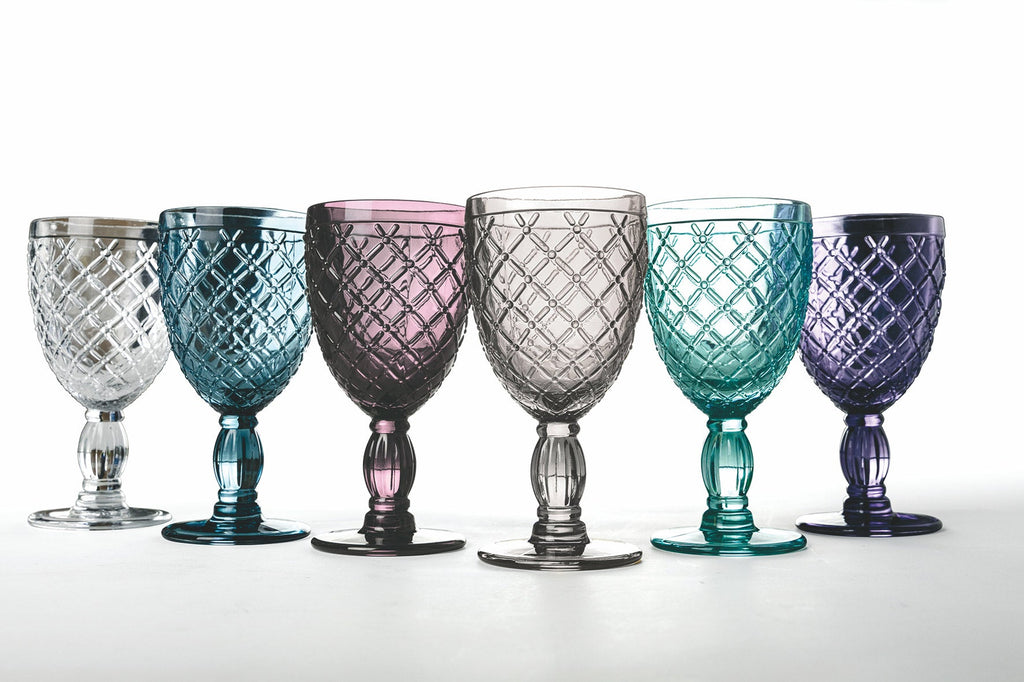 Auf der Höhe eines eleganten Tisches und in der Lage, in einem informellen Ambiente zu glänzen, erhellen die Castle-Gläser jede Mahlzeit dank der kostbaren farbigen Schnitzereien, die wie kleine Diamanten jedem Getränk Wert verleihen. Klar mit Wasser, umhüllend mit Wein und sehr süß mit Likör begleiten sie jedes Getränk mit einem Hauch von Lebendigkeit.