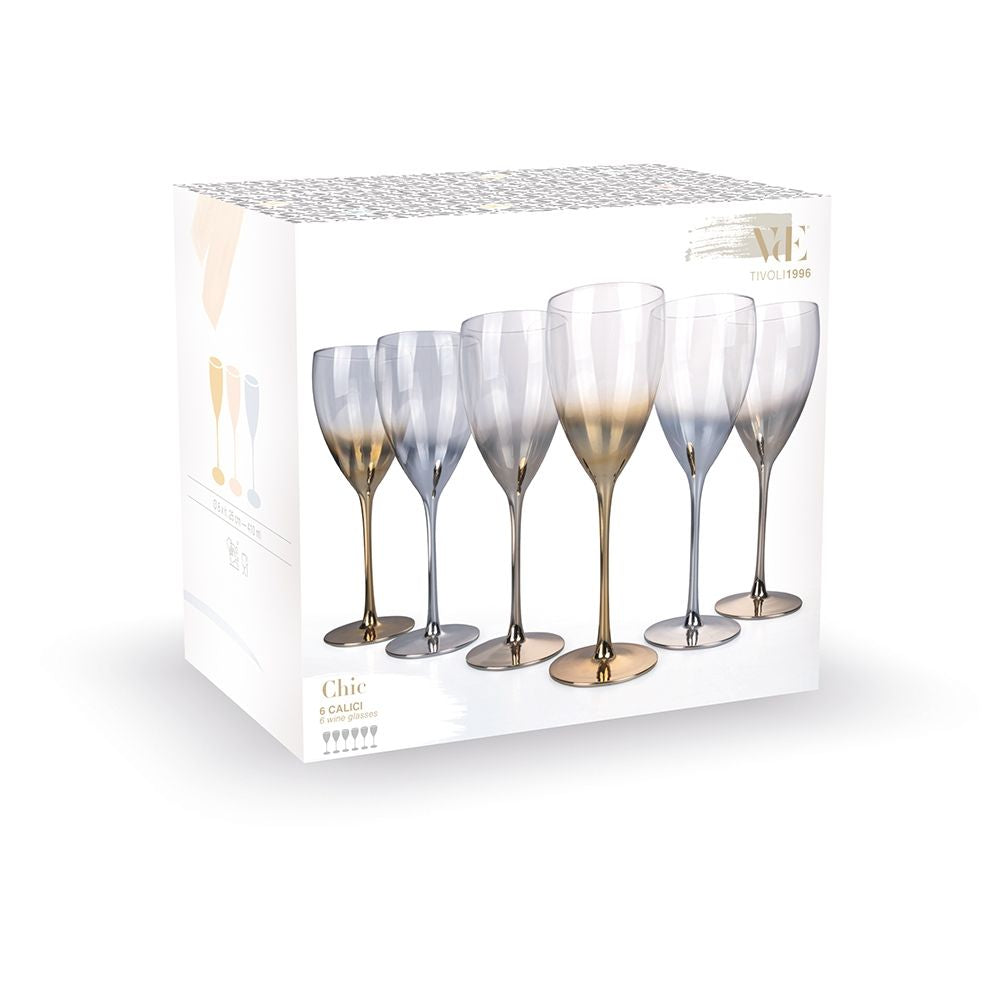 Set mit 6 Très Chic Weingläsern aus Glas Villa d'Este Home Tivoli Champagner