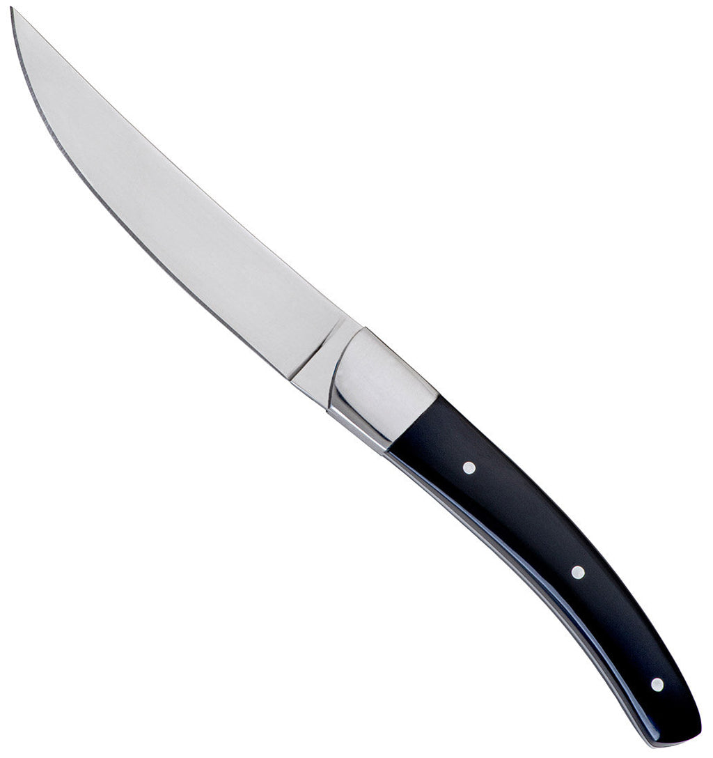 Set mit 6 Steakmessern, glatte Klinge, schwarzer Tyson-Kunststoffgriff