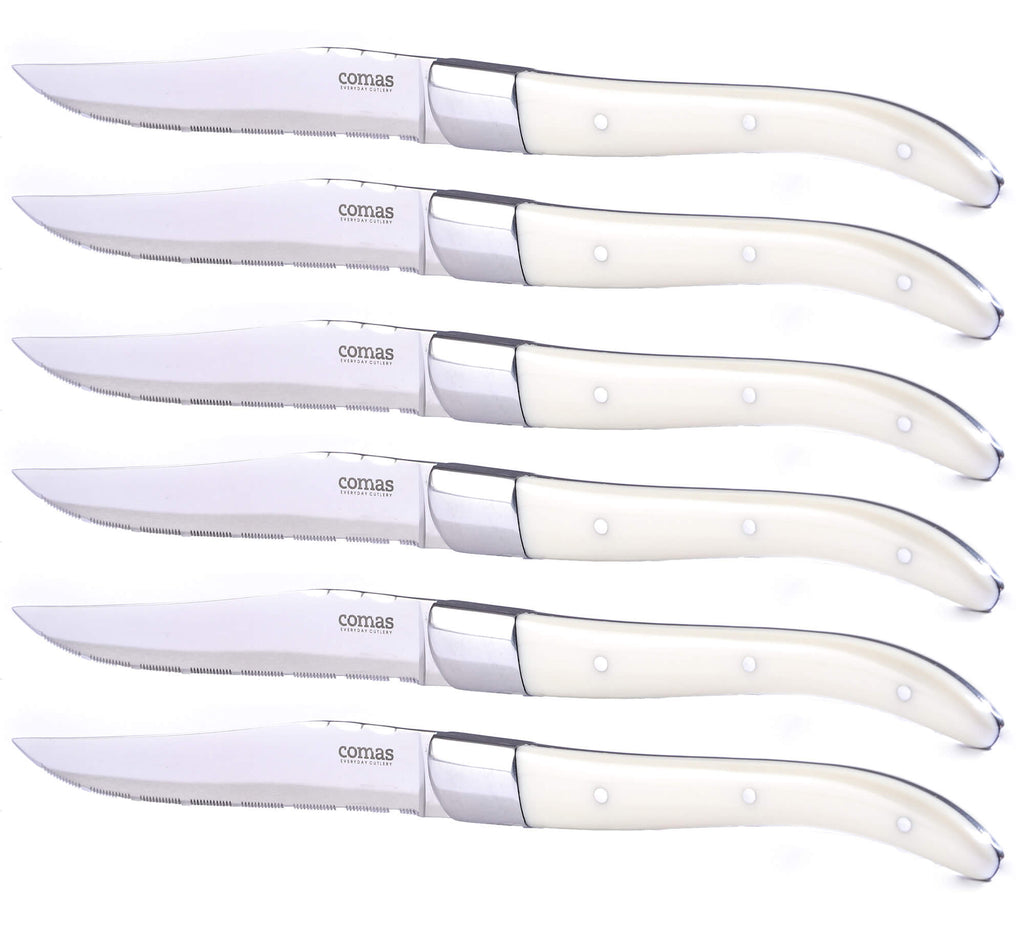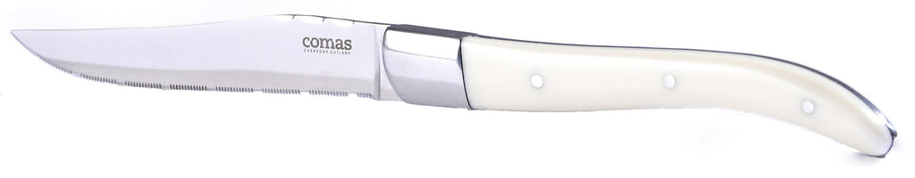 - Steakmesser aus Edelstahl und elfenbeinfarbener Acrylgriff