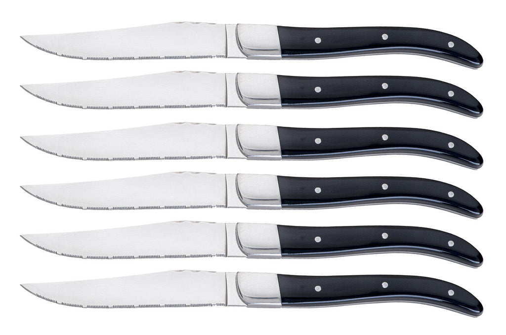 Set mit 6 Steakmessern mit Wellenschliff, schwarzer Alì-Acrylgriff