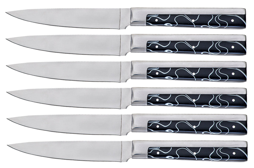 Set mit 6 schwarzen Samurai-Edelstahl-Tafelmessern mit glatter Klinge