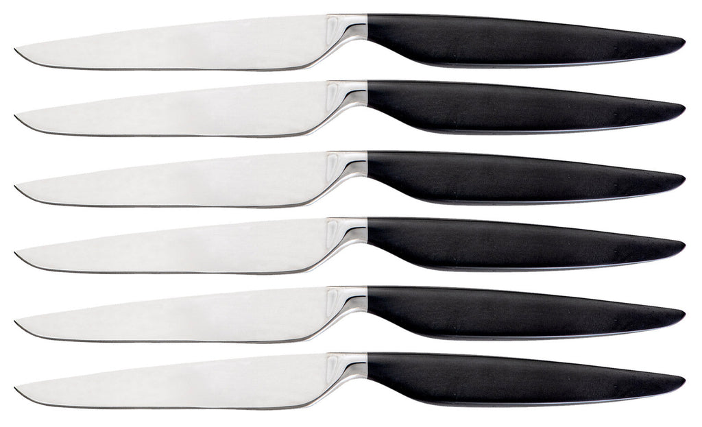Set mit 6 Tafelmessern mit glatter Klinge aus schwarzem Magnolien-PVD und Edelstahl