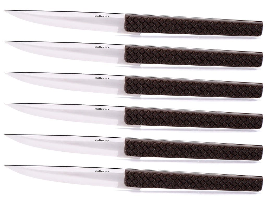 Set mit 6 Tafelmessern, glatte Klinge, Polypropylen-Griff, K8, Schildkrötenbraun
