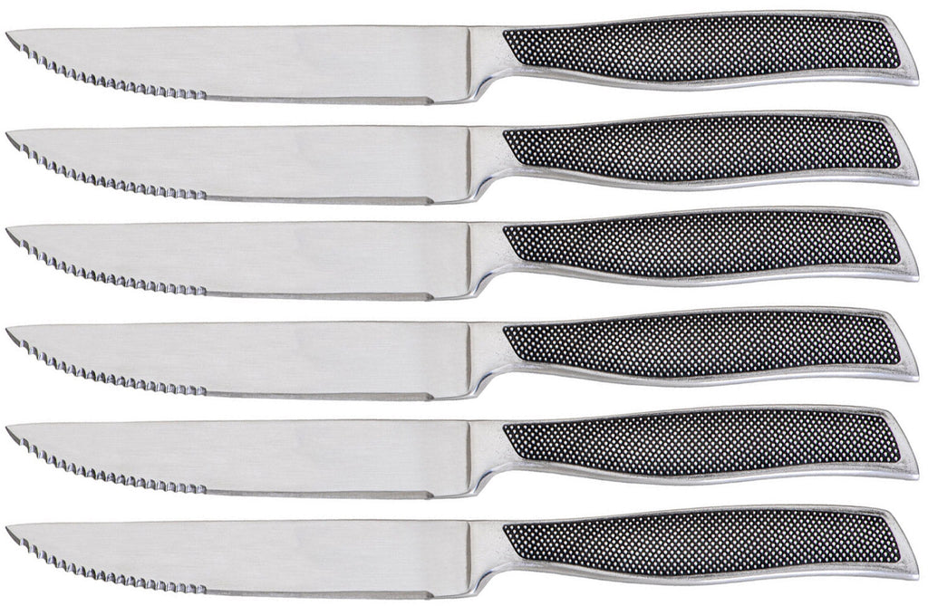 Set mit 6 Rambo Edelstahl-Tafelmessern mit Wellenschliff
