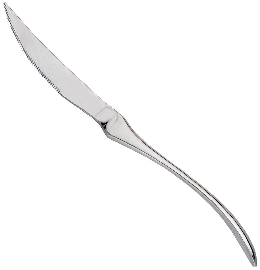 Trek ist ein Messer mit krummliniger Silhouette, komplett aus Edelstahl, ideal, um dem Tisch einen Hauch von Originalität zu verleihen. Der leichte Griff und die Wellenschliffklinge sorgen für Komfort beim Schneiden von Fleisch und verschiedenen zweiten Gängen. Wählen Sie Trek für eine filigrane, aber fesselnde Mise en Place!