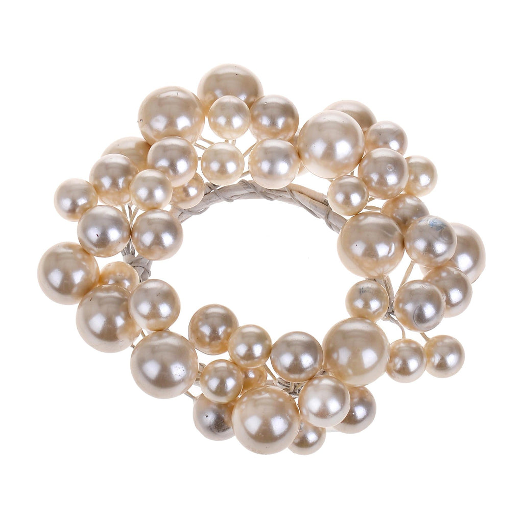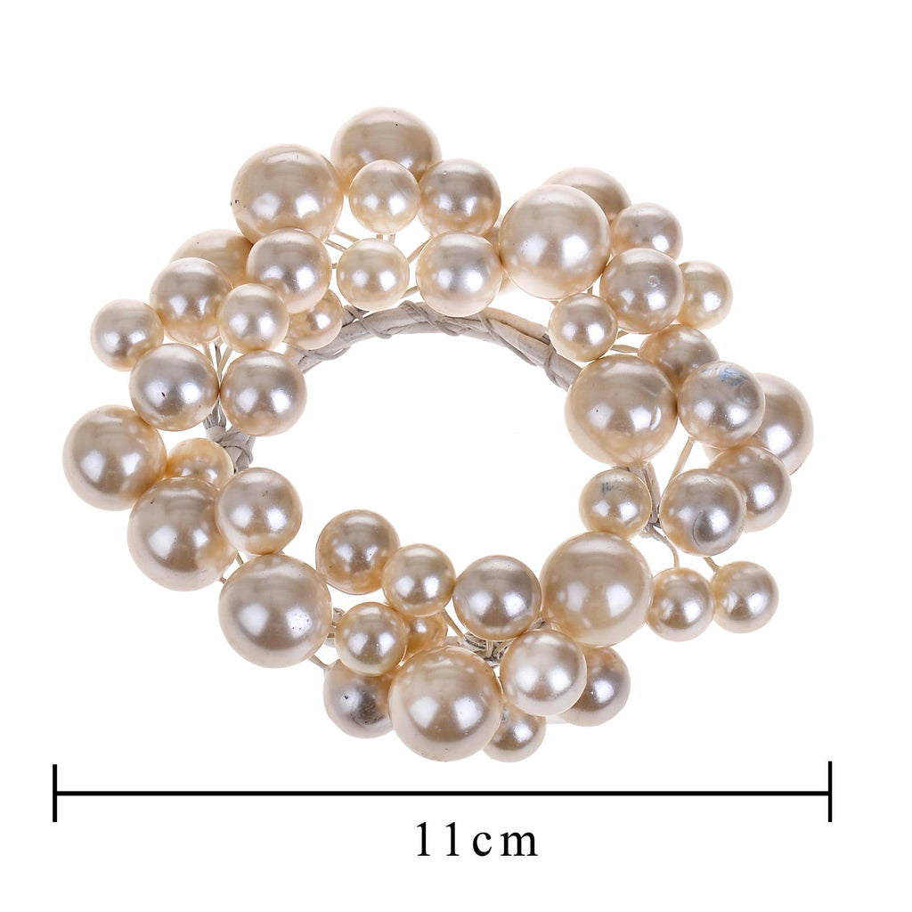Set 6 Runde Kerze mit Perlen Ø11 cm Weiß
