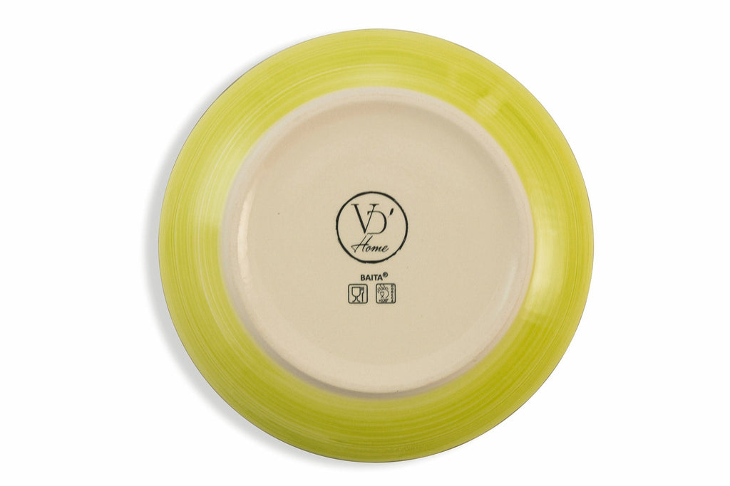 Handbemaltes Steingut: Stärke und Einzigartigkeit Teller aus Steingut fallen sofort durch die starke Persönlichkeit auf, die durch die Robustheit des Materials zum Vorschein kommt. Sie sind dick und widerstandsfähig, halten die Wärme heißer Gerichte und erleichtern das Servieren. Jeder Teller ist ein Unikat: handbemalt, behalten sie originale und unnachahmliche Details bei, die sofort in den Pinselstrichen, Dekorationen, Oberflächen und im Endeffekt sichtbar sind, der mit dem Gerät zurückgegeben wird. Bringen wir Farbe in den Tisch. Der Suppenteller aus dem Service Baita färbt seine Unterseite in den gleichen Farben wie der flache Teller und der Obstteller. Das Ergebnis? Ein reichhaltigerer, intensiverer Tisch mit einer doppelten Seele, die es zu entdecken gilt.
