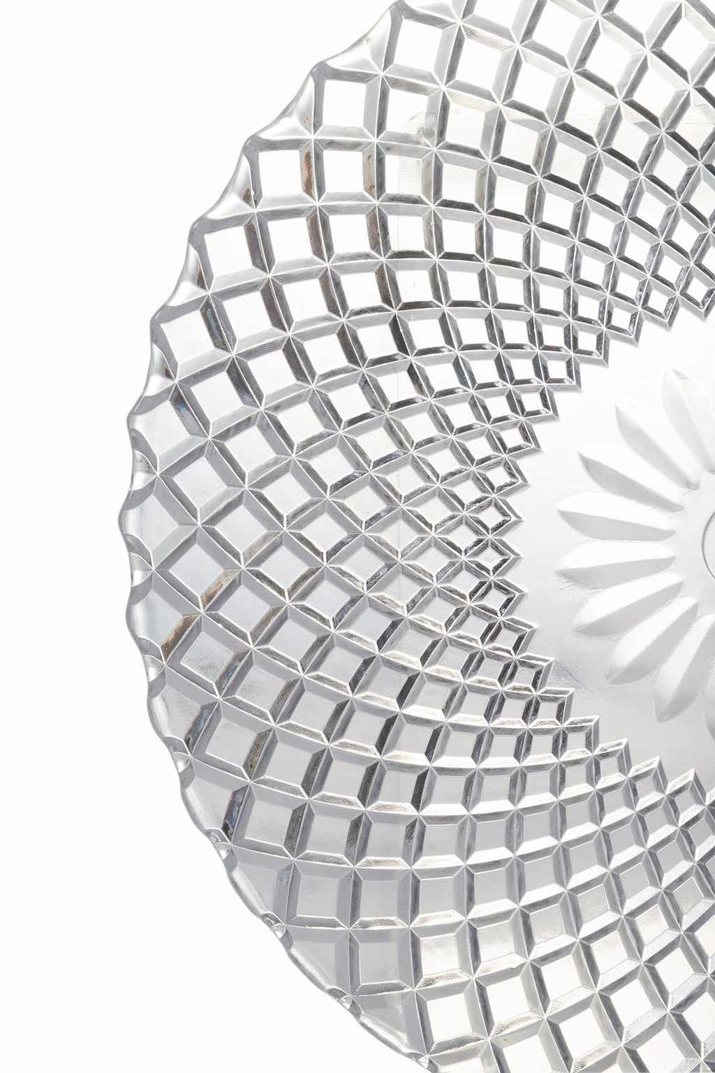 Beim Tisch Imperial erreichen Eleganz und Schlichtheit die perfekte Balance. Die Transparenz des Glases betont die Zutaten und die Zusammensetzung des fertigen Gerichts. Die fein geschnitzte Oberfläche und das filigrane Dekor verwandeln die Teller in einzigartige und harmonische Ergänzungen, die sich perfekt für die Präsentation in einem Sideboard, auf einem Regal oder gut sichtbar auf einem Regal eignen.