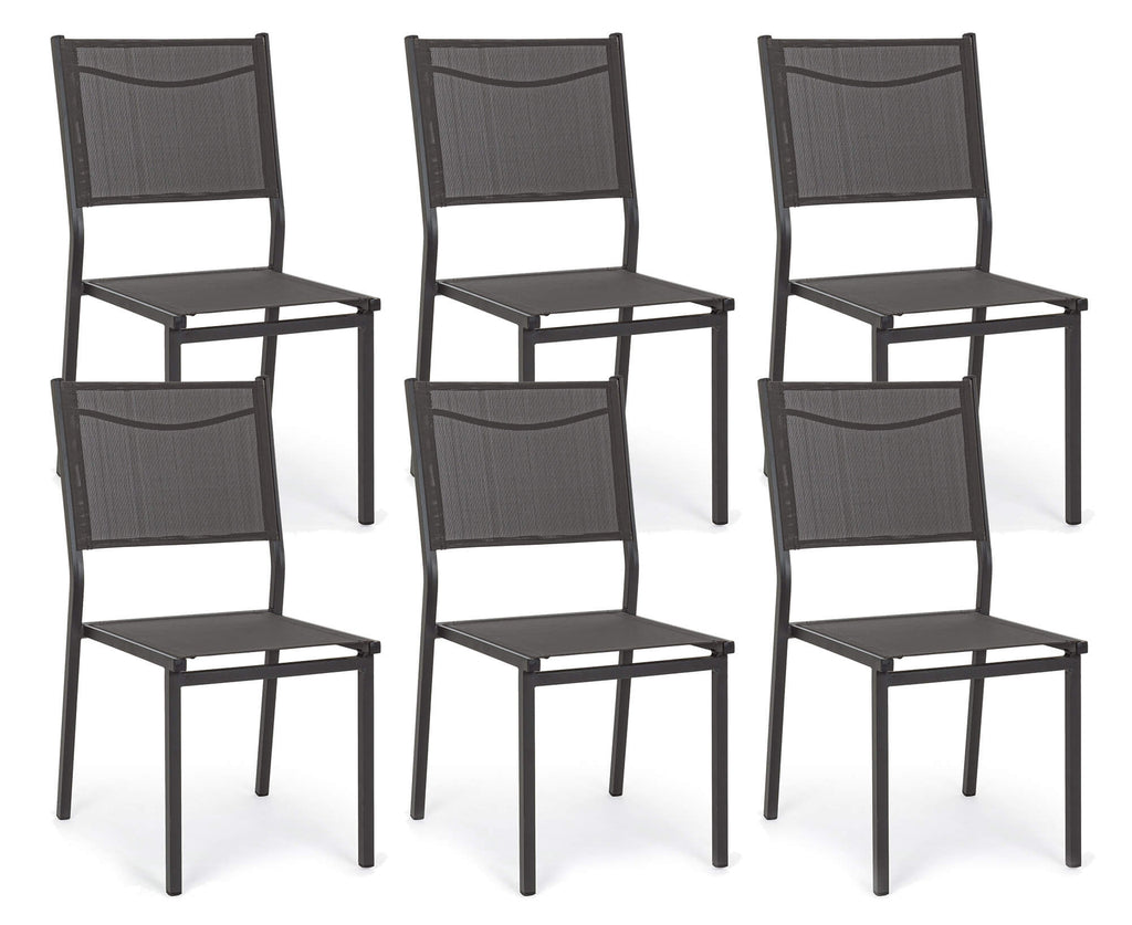 Set mit 6 Gartenstühlen 46x57x88 cm in Aluminium und Textilene Hilde Anthrazit