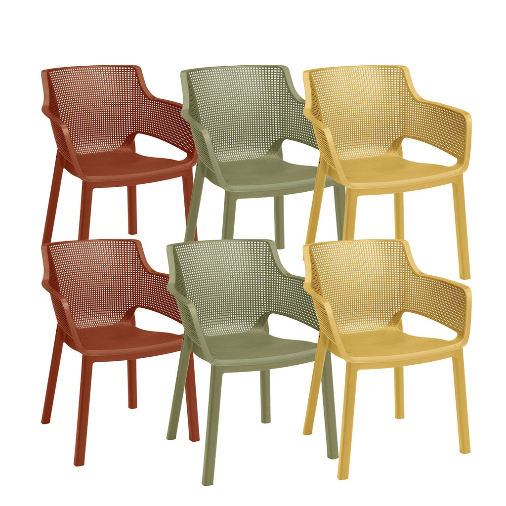 Scopri la Elisa Chair, una sedia dal design moderno e raffinato, perfetta per arricchire i tuoi spazi interni ed esterni. Con una struttura elegante e una finitura liscia, questa sedia offre un comfort senza pari grazie alla sua seduta e schienale con una trama geometrica intrecciata. Disponibile in confezione da 6 pezzi (2 Verde, 2 Rosso, 2 Giallo), l'Elisa Chair non solo aggiunge un tocco di stile distintivo, ma garantisce anche modernità senza compromessi.