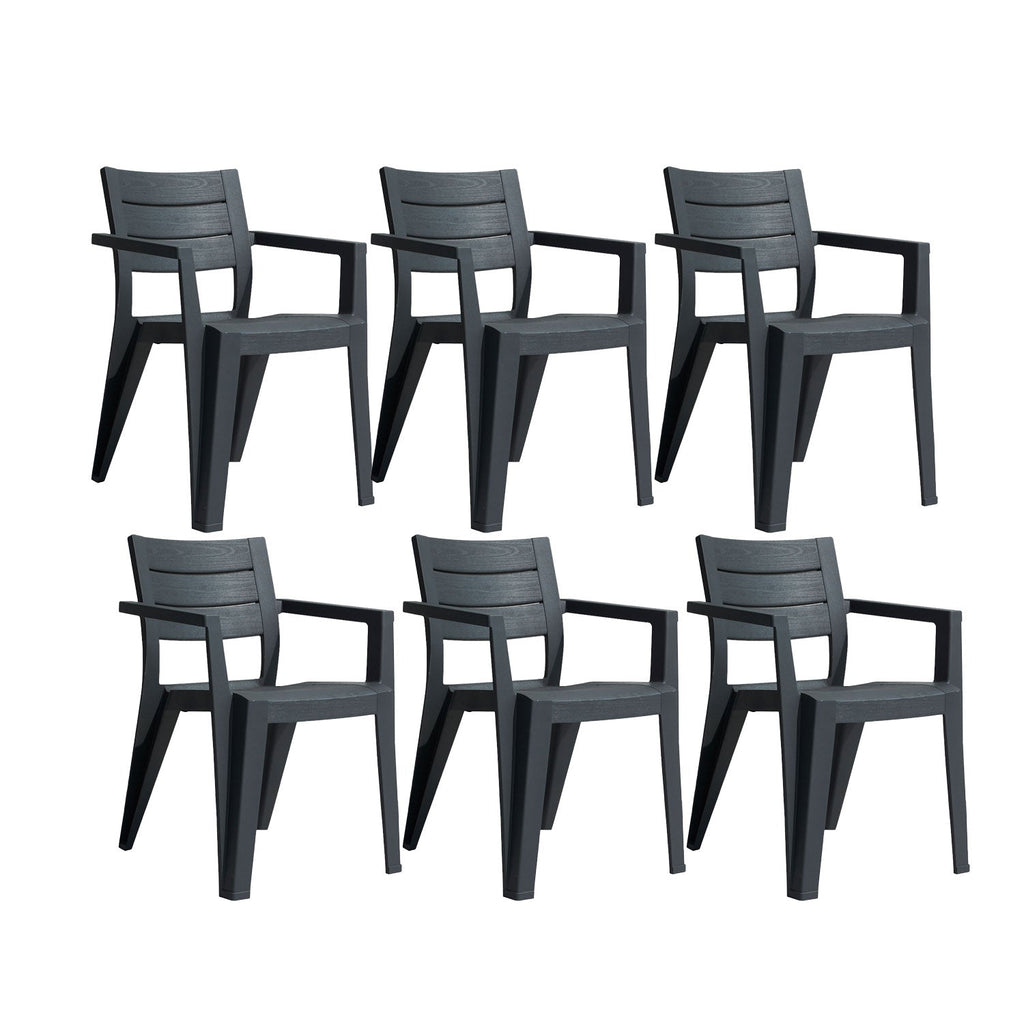 Set 6 Sedie da Giardino Keter Julie 61,5x58,5x79 cm Effetto Legno Grafite