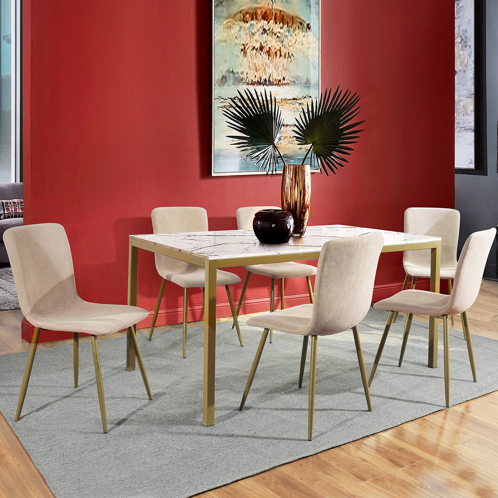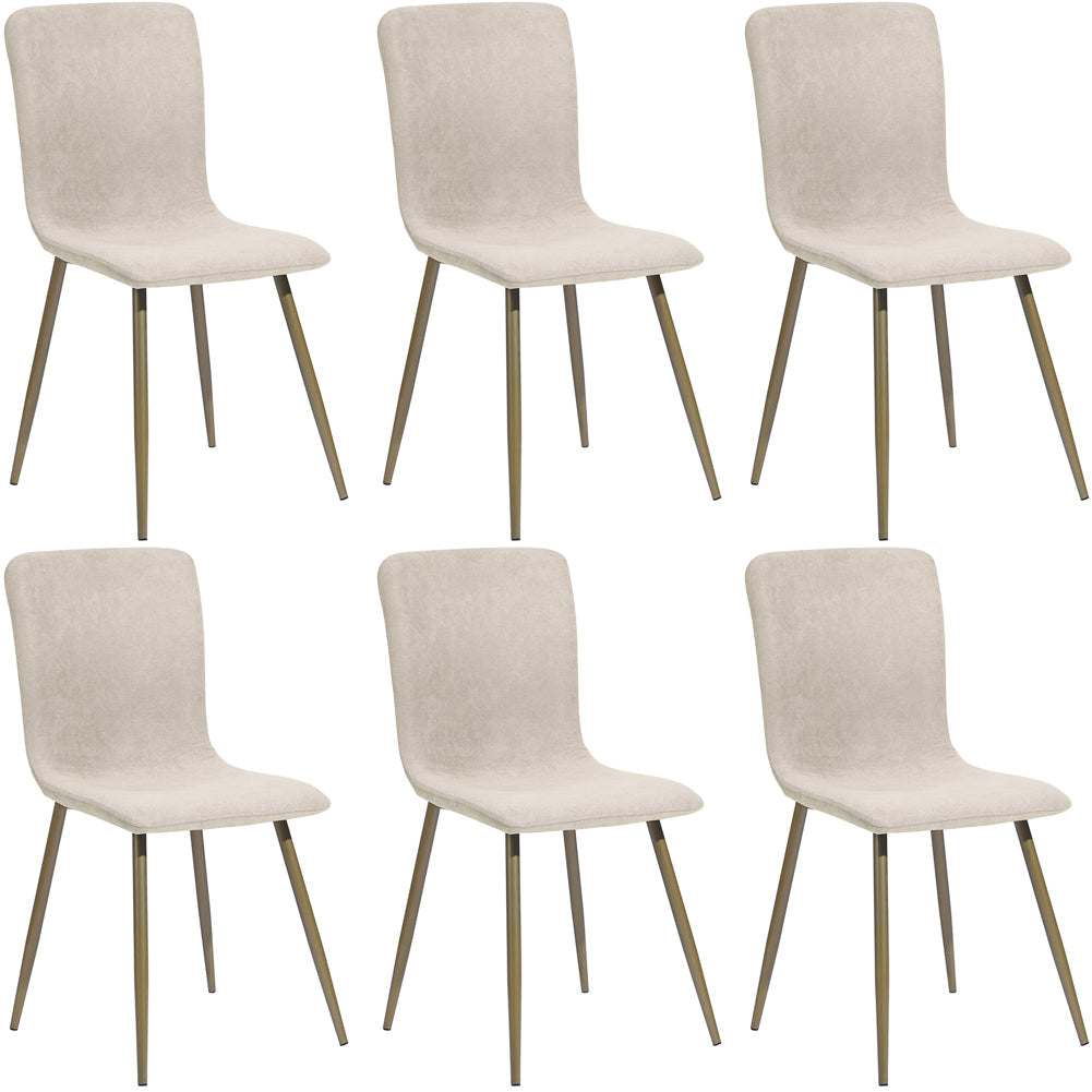 1 x Set 6 Sedie per Sala da Pranzo Beige con Gambe Acciaio Dorato Seduta Ergonomica
