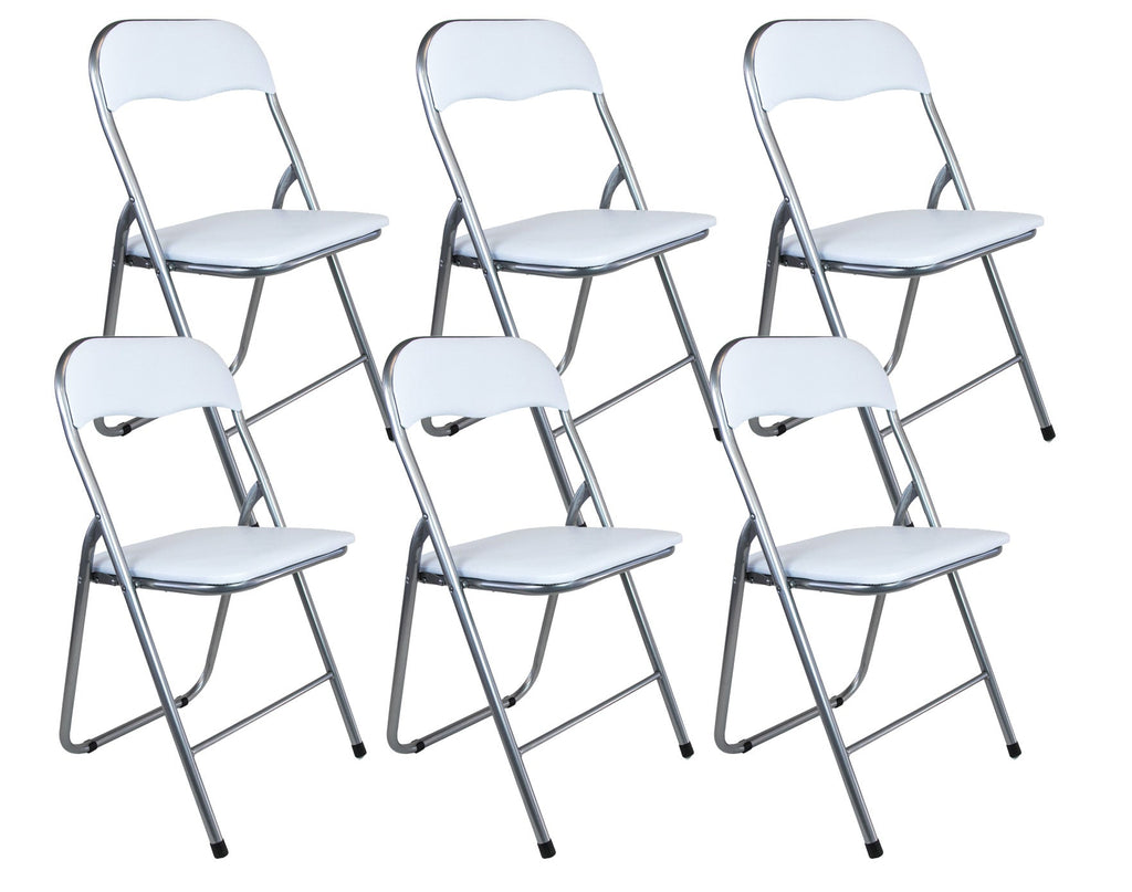 Set mit 6 Klappstühlen 45 x 45 x 45/80 cm aus Stahl und gepolstertem PVC weiß