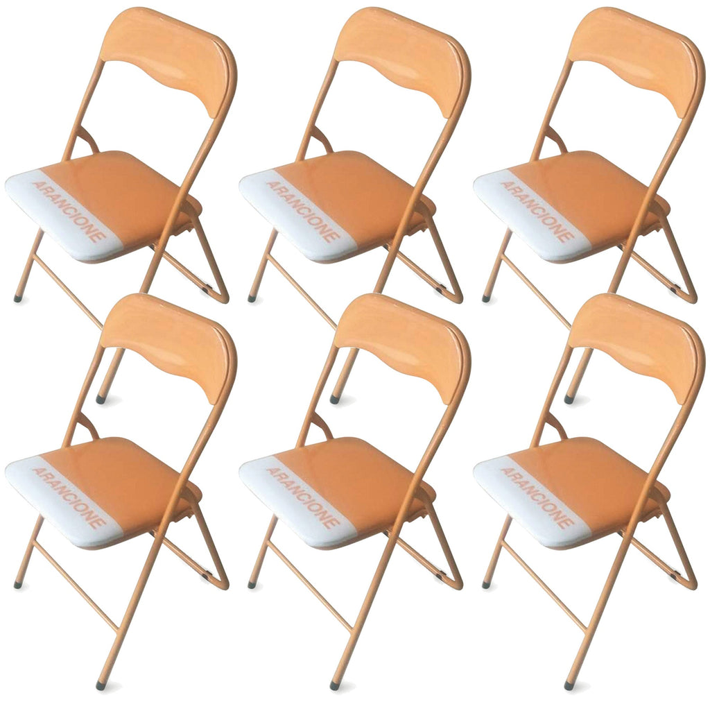 Satz mit 6 orangefarbenen Soriani-Klappstühlen aus Metall