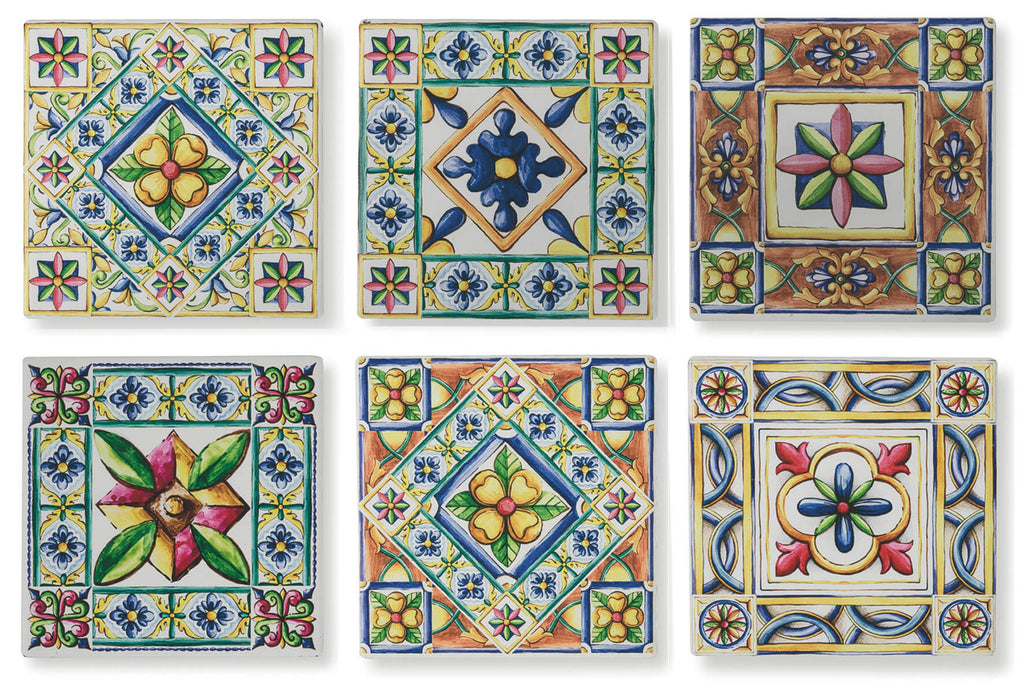 Set mit 6 quadratischen Keramikuntersetzern mit Korkboden 10 x 10 cm Villa d'Este Home Tivoli 1996 Costiera