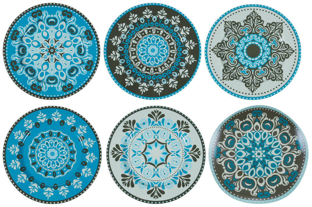 Cala Jondal Accessoires vervollständigen ein reichhaltiges Set, das nicht an der Fülle an Dekoration spart. Kritzeleien und Geometrien lassen sich vom Orient inspirieren und schwelgen in Meeresfarben für ein elegantes, üppiges und auffälliges Ergebnis.