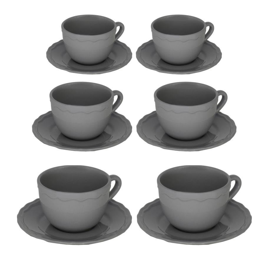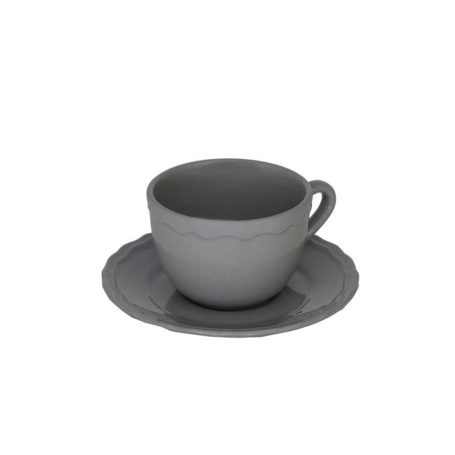 Set 6 Tazze da The con Piattino Ø9,5xh7 cm in Gres Porcellanato Juliet Grigio