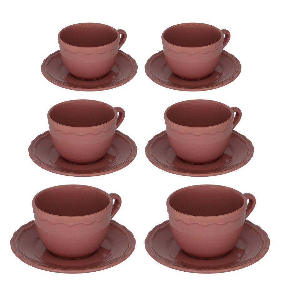 Set 6 Tazze da The con Piattino Ø9,5xh7 cm in Gres Porcellanato Juliet Rosa Antico