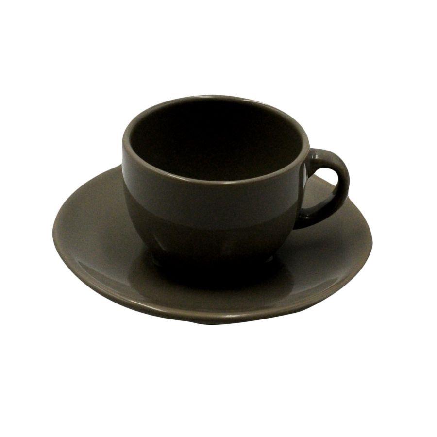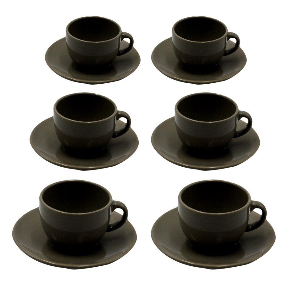 Set 6 Tazze da The con Piattino Ø9,5xh7 cm in Gres Porcellanato Romeo Tortora