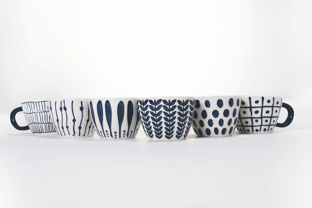 Set 6 Kaffeetassen aus Steinzeug 90 ml Villa d'Este Home Tivoli 1996 Masai Blue