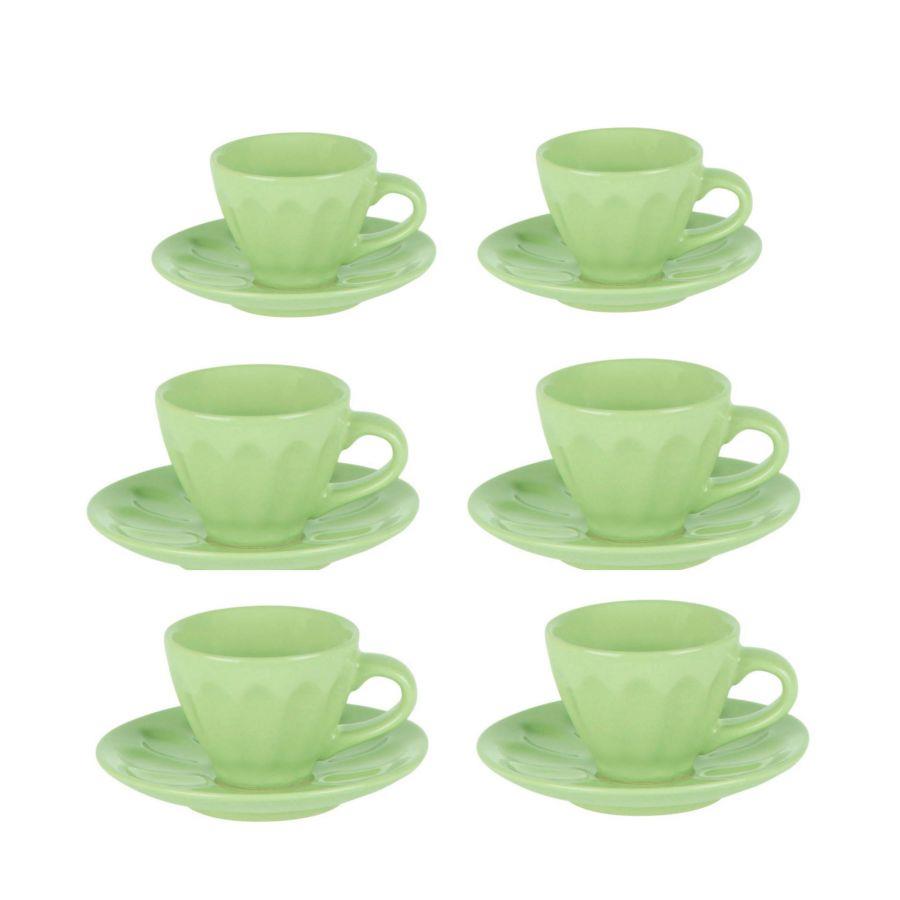 Set 6 Tazzine da Caffè con Piattino Ø7,5xh4 cm in Gres Porcellanato Amleto Verde Chiaro