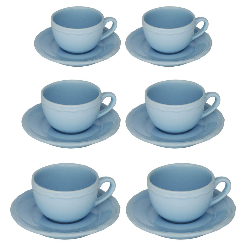 Set 6 Tazzine da Caffè con Piattino Ø7,5xh5 cm in Gres Porcellanato Juliet Azzurro Pastello