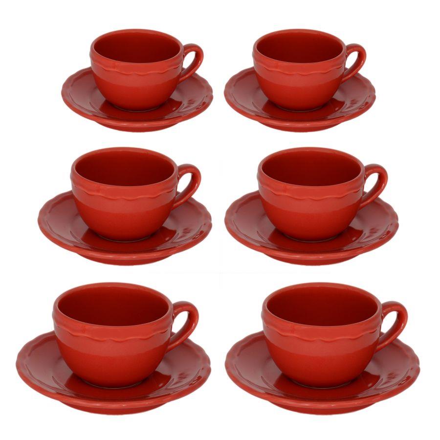 Set 6 Tazzine da Caffè con Piattino Ø7,5xh5 cm in Gres Porcellanato Juliet Rosso