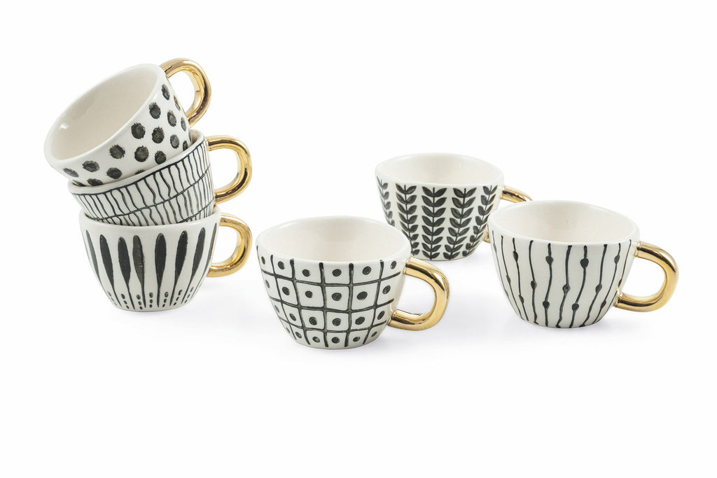 Set 6 Kaffeetassen Ø7x5 cm aus Steingut Villa d'Este Home Tivoli Masai Schwarz und Weiß