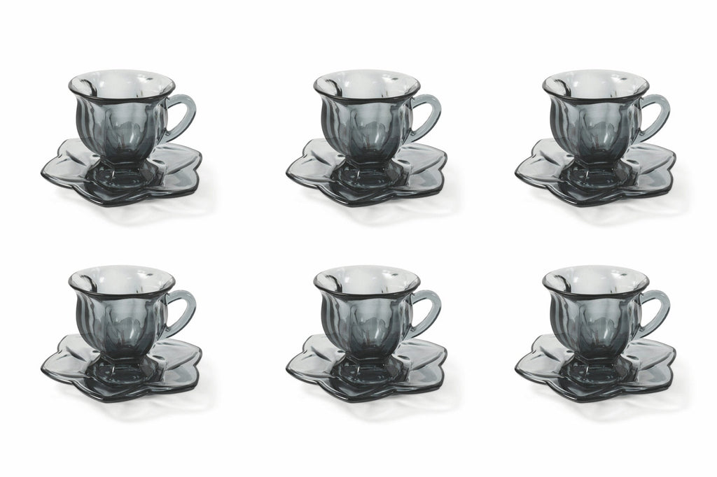 - Glas-Set mit 6 Kaffeetassen mit Untertassen