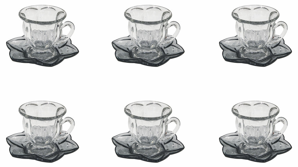 - Glas-Set mit 6 Kaffeetassen mit Untertassen