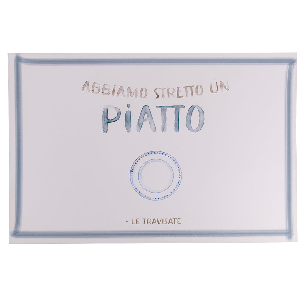- Disponibile in 6 assortimenti: "Non tocchiamo questo PASTO"; "Stai una TAVOLA"; "Abbiamo stretto un PIATTO"; "Ho PRANZO lacrime di gioia"; "Wow! Che colpo di CENE"; "Per me va bene ma FAME voi".