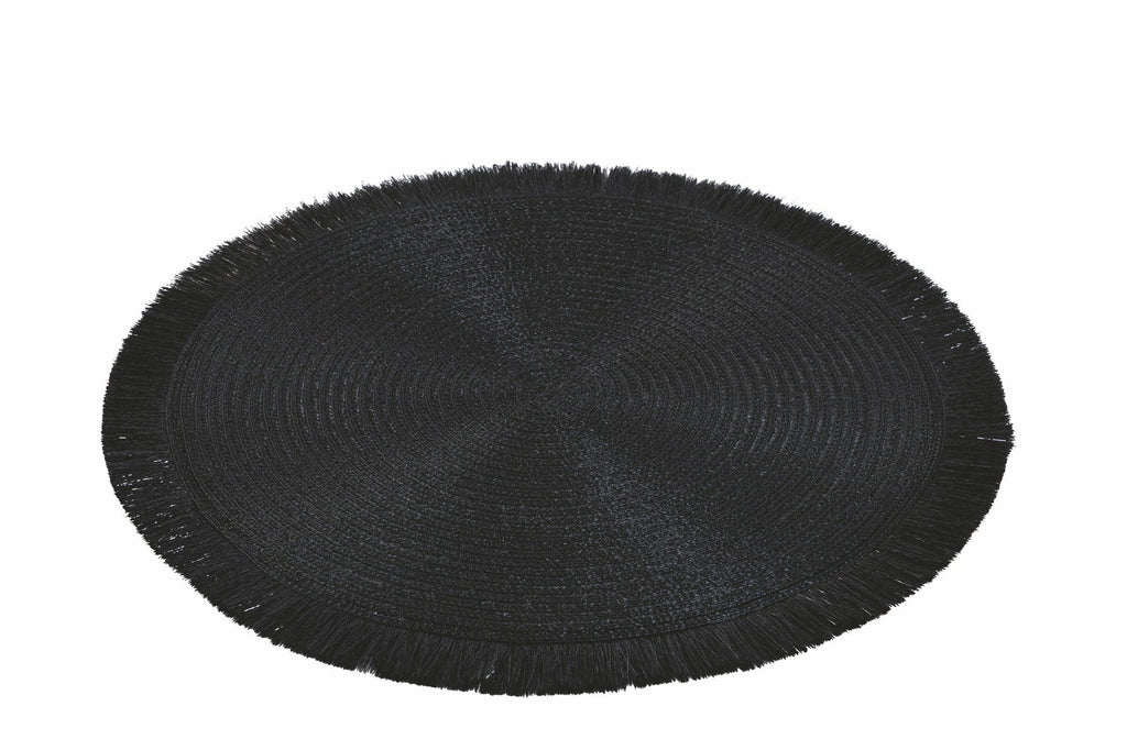 Set mit 6 runden schwarzen Tischsets mit Fransen 38 cm Villa d'Este Home Tivoli
