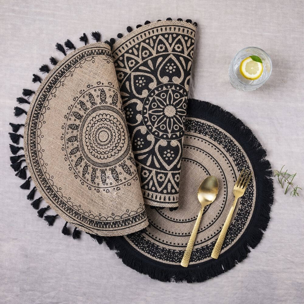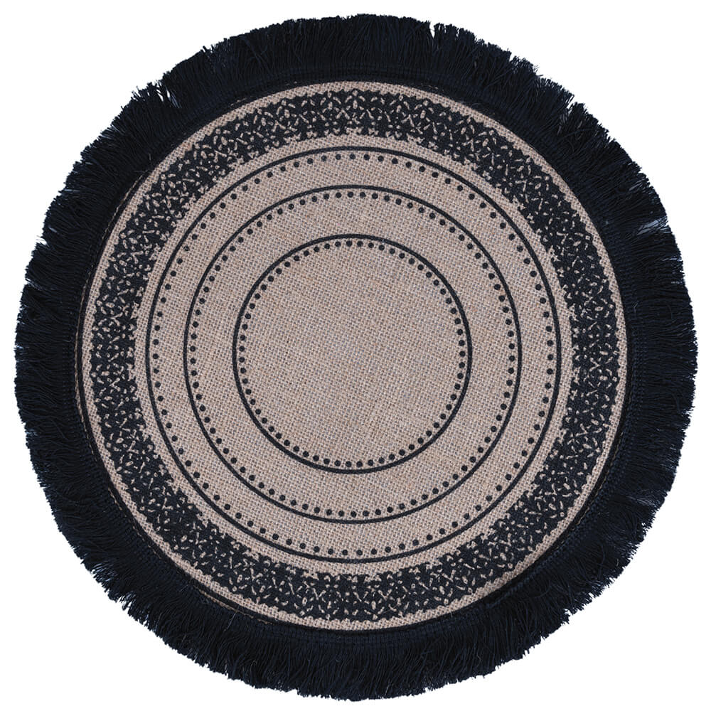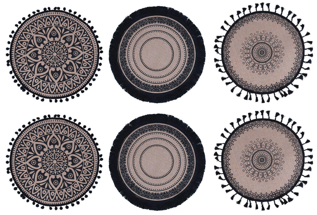 Set 6 Tovagliette Ø38 cm in Juta VdE Tivoli 1996 Black Nero e Beige