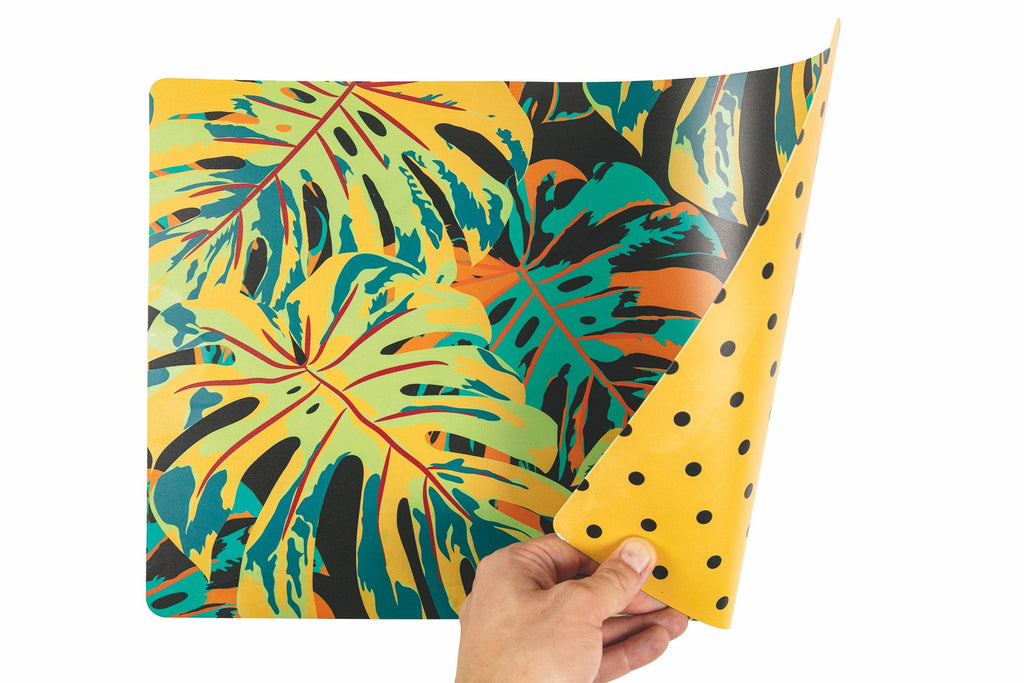 Für einen Brunch mit innovativem Stil, ein Frühstück, das mit dem richtigen Fuß beginnen muss, ein schnelles Mittagessen: Die starren und widerstandsfähigen Tischsets werten den Tisch mit ihrem Stil und Design auf. Doppelseitig und vielseitig: Sie sind in verschiedenen Farben erhältlich, um dem Set immer wieder neue Akzente zu setzen.