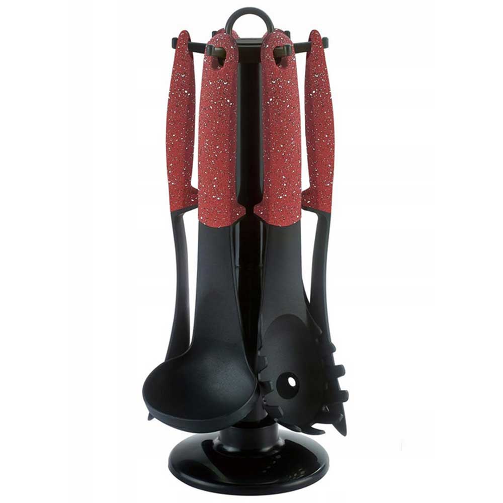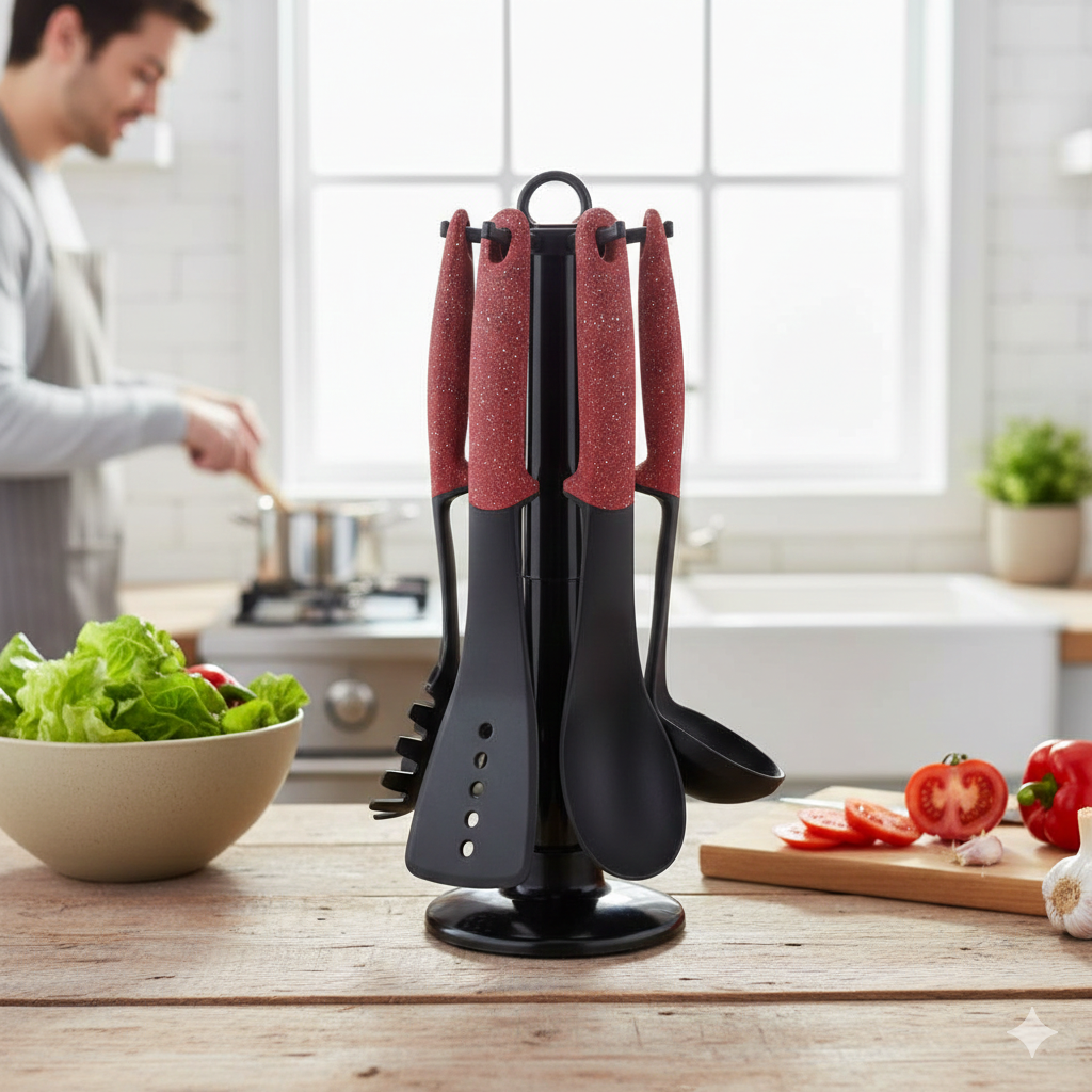 Set 7 Mestoli da Cucina per Uso Alimentare Resistenti al Calore con Supporto Bordeaux