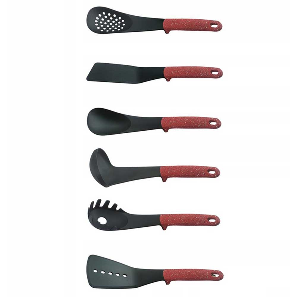 Set 6 Mestoli da Cucina per Uso Alimentare Resistenti al Calore con Supporto Bordeaux