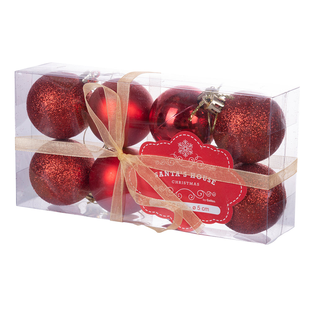 Set mit 8 Weihnachtskugeln Ø5 cm aus rotem Kunststoff