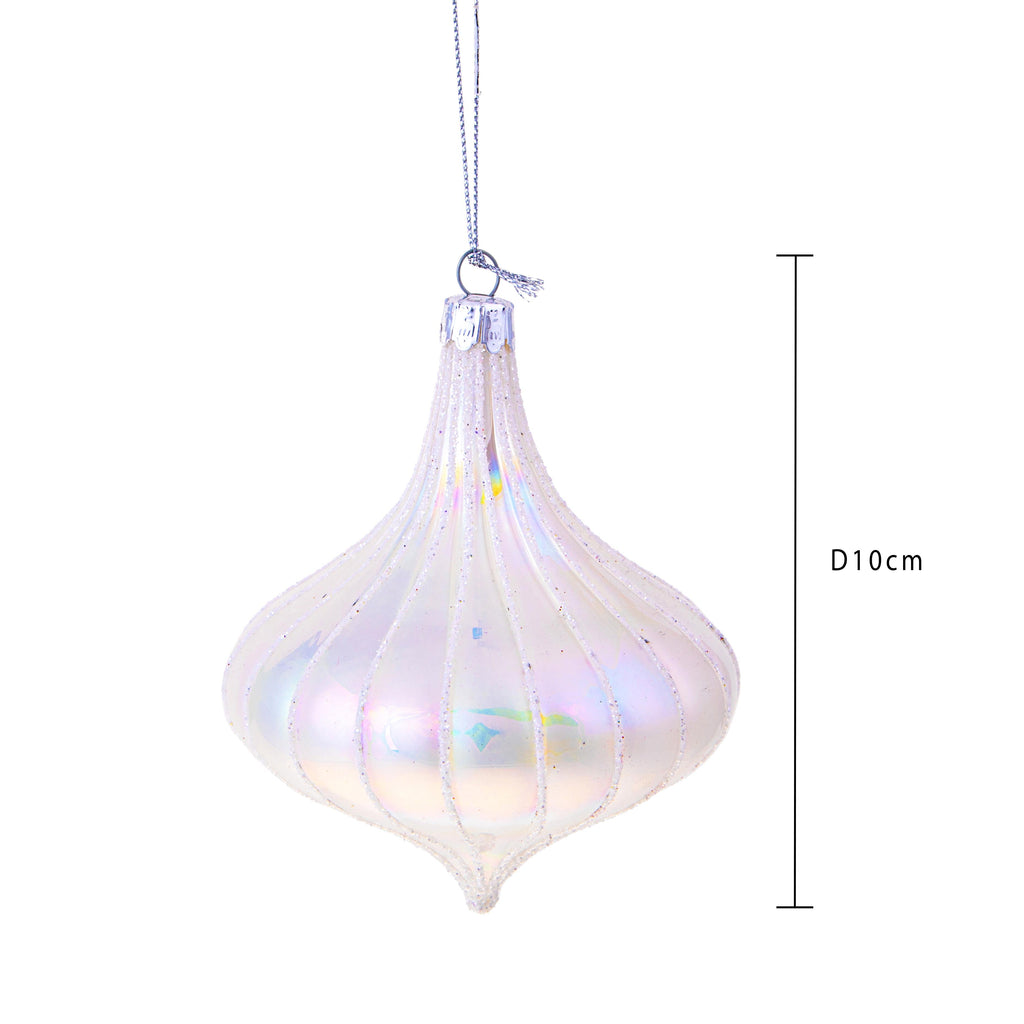 Set 8 Kreisel Ø10 cm Weiß mit Glitzer