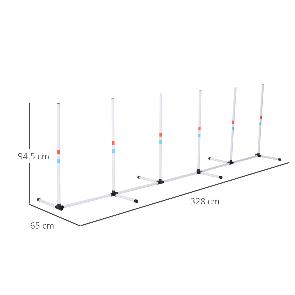 Outdoor-Hundetrainingsset mit 6 Stangen und weißer Tragetasche