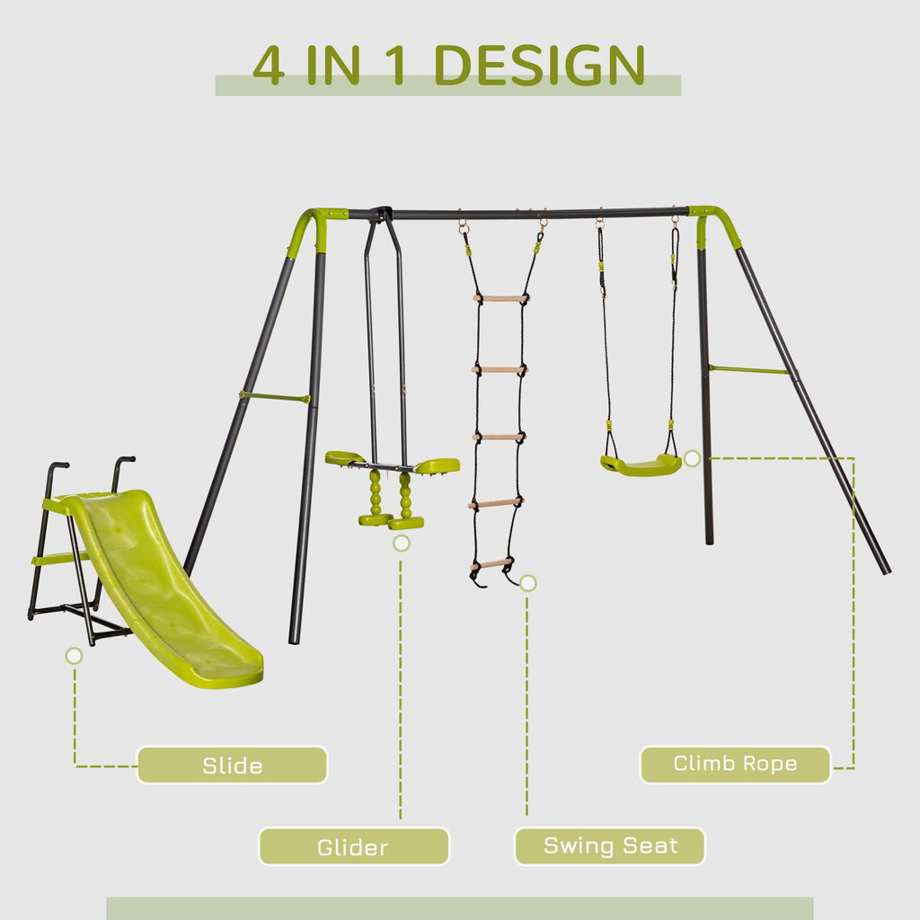 3-Sitzer-Schaukelset mit Leapfrog und Climbing + Black and Green Slide
