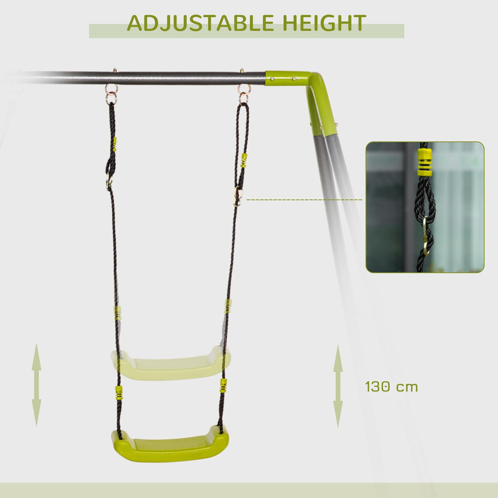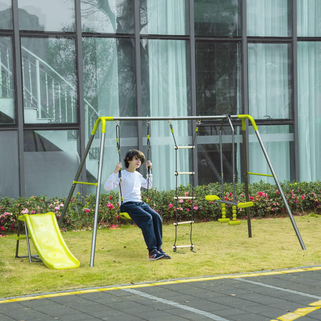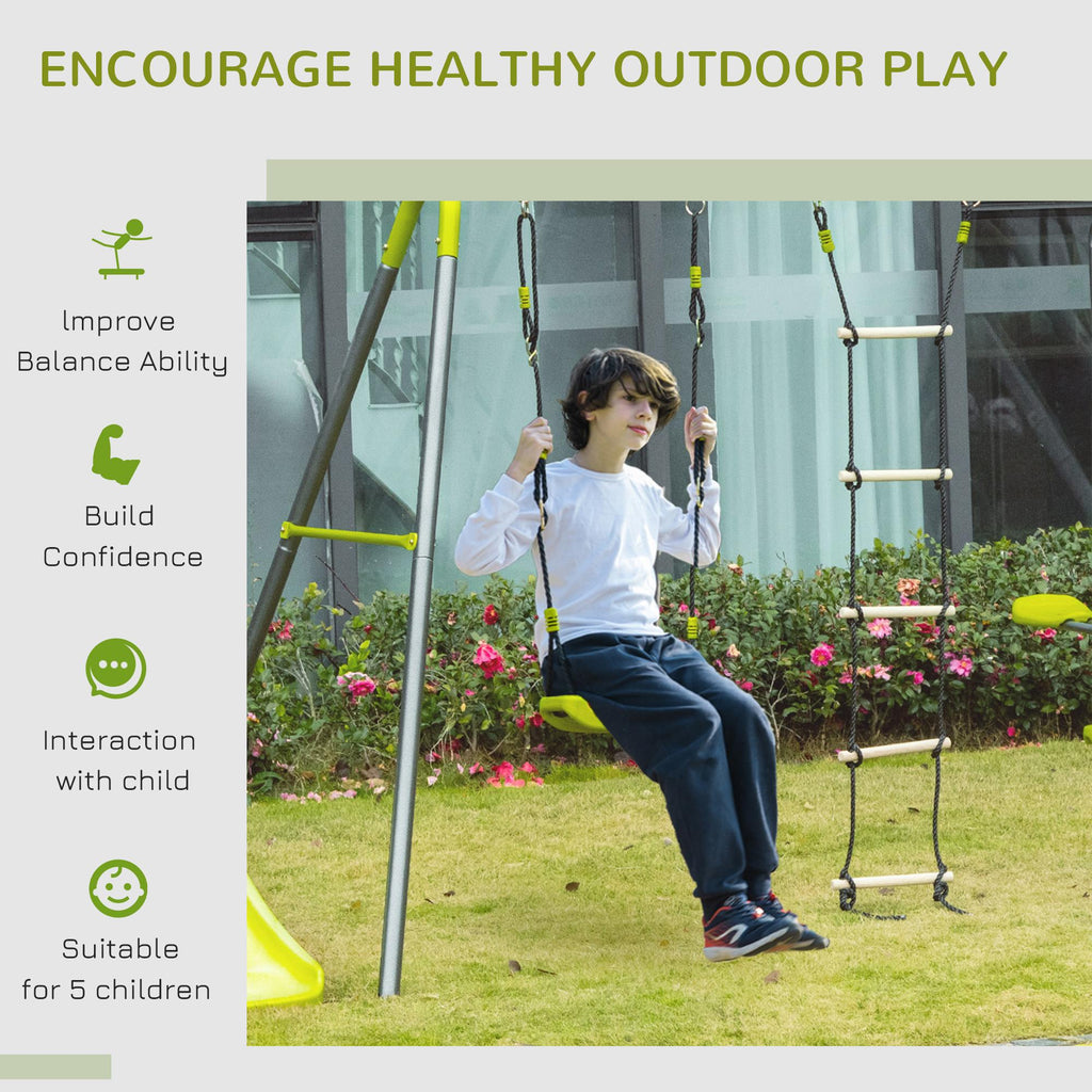 - Einzelschaukel, Doppelschaukel, Kletterseil und Rutsche für bis zu 5 Kinder zum Spielen