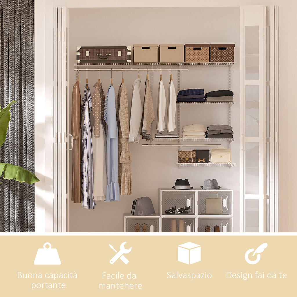- VOLLSTÄNDIG EINSTELLBAR: Sie können die Position der Regale und Kleiderstangen frei an Ihre Platz- und Kleidungsorganisationsbedürfnisse anpassen
